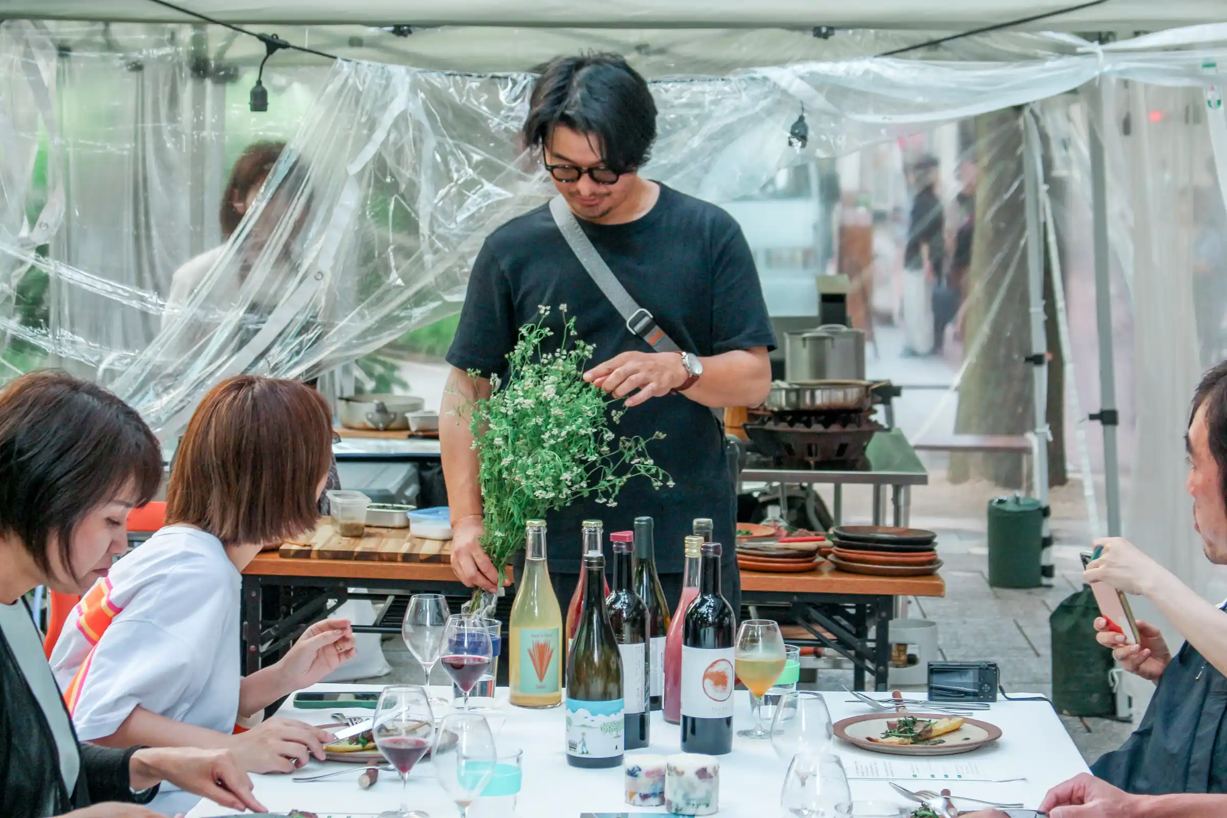 東武東上線でつながる有機農業の里・小川町で農業を営む有機農家「横田農場」と「SOU FARM」の野菜、地元で搾られた油や挽かれた小麦粉などを使って、「Cadota」の新井直之シェフがその場で料理を仕上げます。